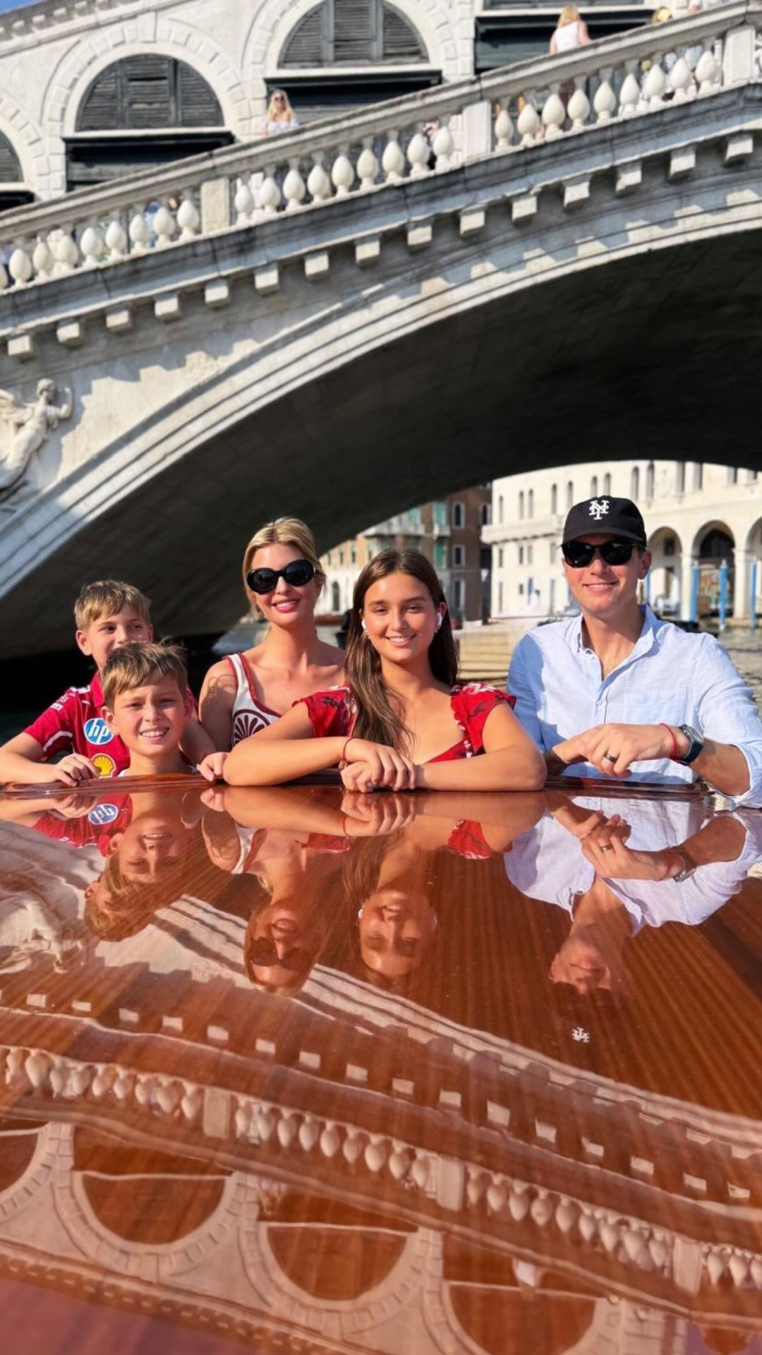 Сепак, само вчера Иванка беше забележана во Венеција во раскошен комплет составен од тесен бел топ и здолниште со впечатлив црвен етно дезен. Таа го надополни овој привлечен outfit со мала плетена чанта и црни очила за сонце, додека косата ѝ беше собрана во елегантна пунџа.